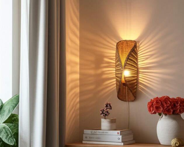 Enhance your home interior with this boat-shaped cane wall lamp, blending rustic charm with soft lighting. Perfect for cozy, bohemian, or tropical interiors.