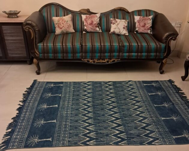 These soft, simple cotton indigo block printed rugs from Rajasthan can be used at any part of the house to brighten up the space at affordable range. The natural indigo dye is extremely popular in the region for its versatility. The rugs can also be used as throws.