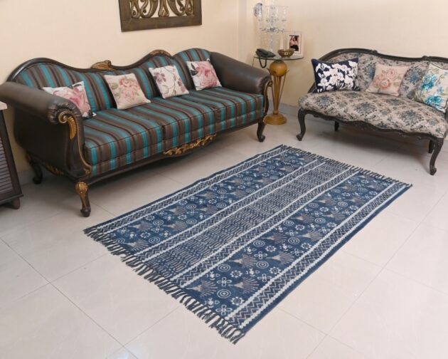 These soft, simple cotton indigo block printed rugs from Rajasthan can be used at any part of the house to brighten up the space at affordable range. The natural indigo dye is extremely popular in the region for its versatility. The rugs can also be used as throws.