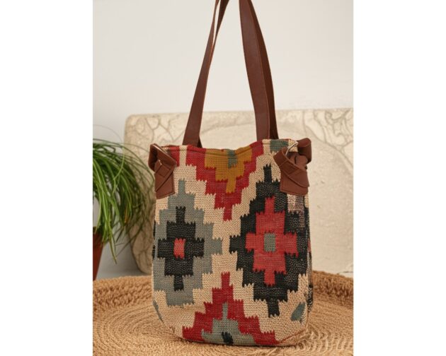Make a statement with this boho-chic jute tote bag, featuring a vibrant geometric pattern. Spacious, durable, and perfect for everyday use.