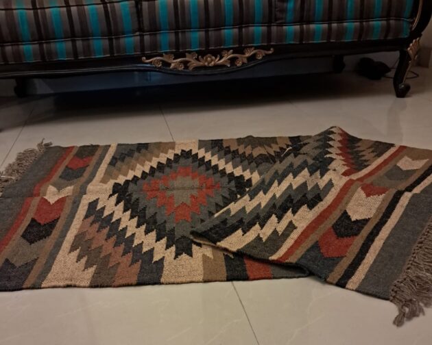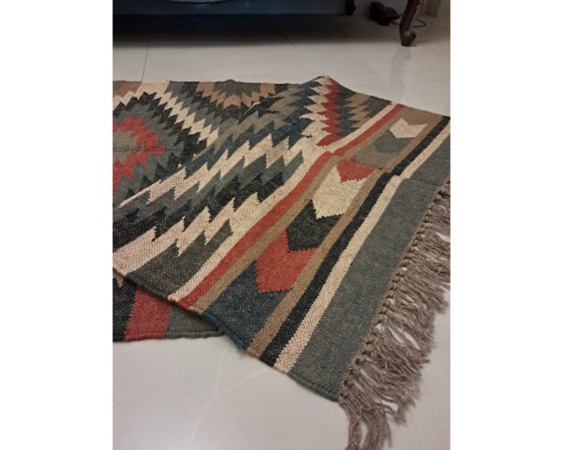 Sourced from the village of Uttar Pradesh, kilims are distinct flatweave rugs depicting tribal art known for its geometric patterns and durability. The colourful patterns of these rugs have made it a popular choice of rugs in contemporary urban Indian households.
